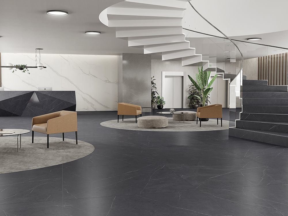 Breng elegantie en klasse in uw interieur met de XTone Liem black polished tegels